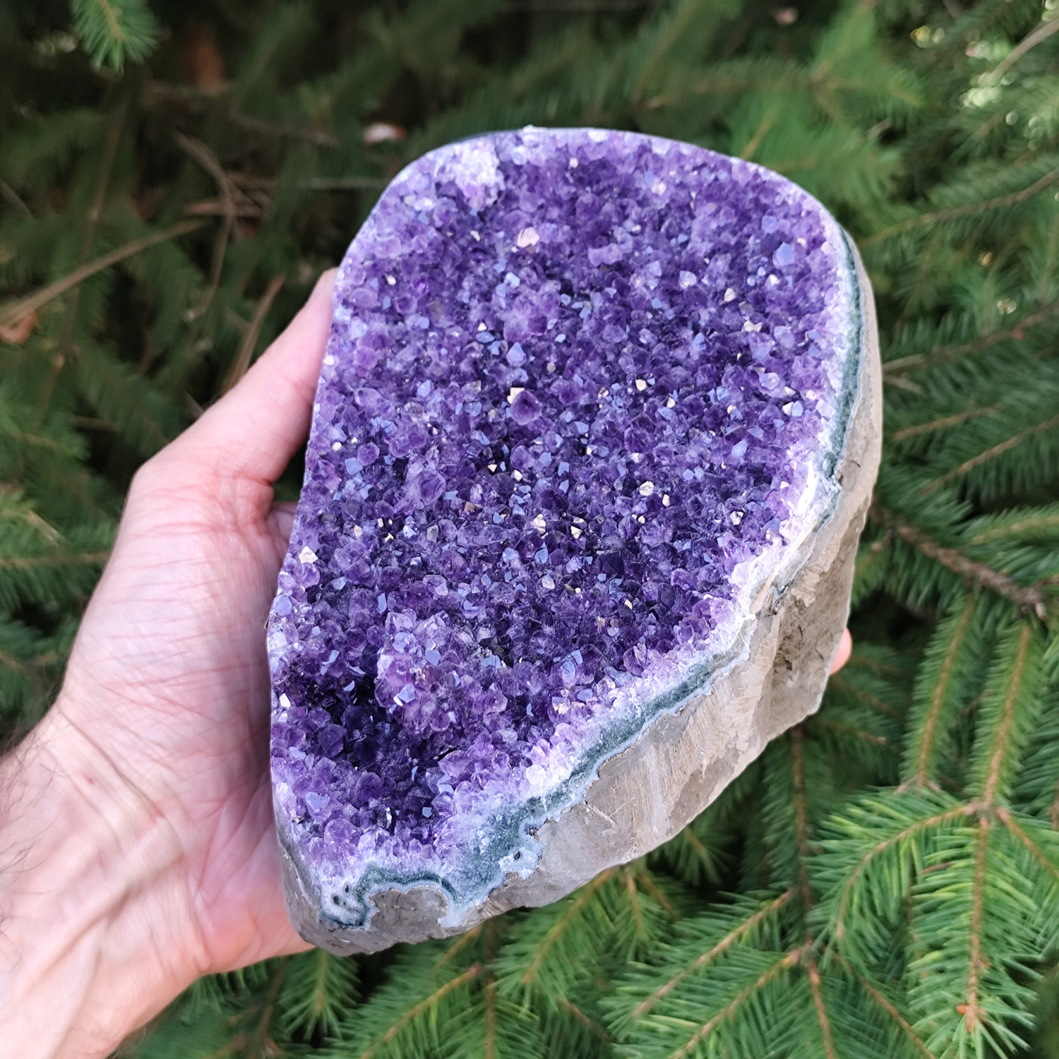 Táto nádherná ametystová drúza pochádza priamo z Uruguaja, známeho svojimi kvalitnými ametystovými ložiskami. Vyniká svojimi sýtymi fialovými kryštálmi, prirodzenou štruktúrou a jedinečným tvarom, vďaka čomu je nielen estetickým doplnkom, ale aj silným energetickým kameňom.