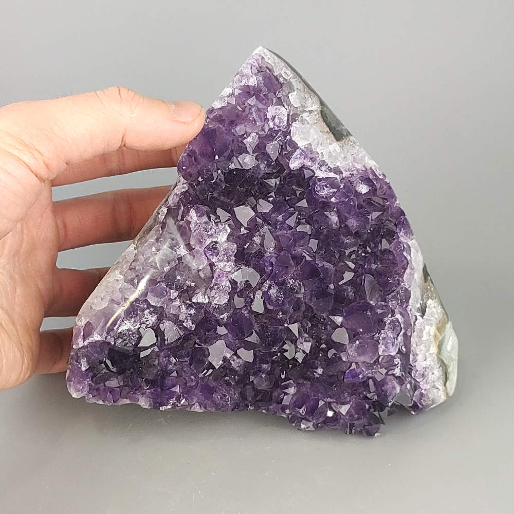 Táto nádherná ametystová drúza pochádza priamo z Uruguaja, známeho svojimi kvalitnými ametystovými ložiskami. Vyniká svojimi sýtymi fialovými kryštálmi, prirodzenou štruktúrou a jedinečným tvarom, vďaka čomu je nielen estetickým doplnkom, ale aj silným energetickým kameňom.