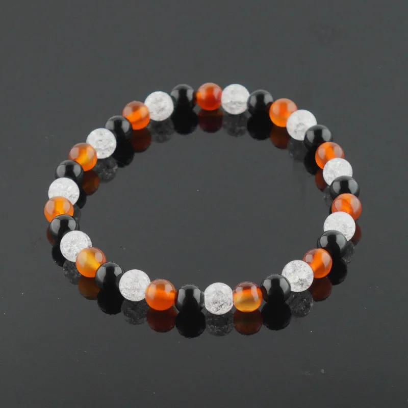 Ónyx, karneol, krištáľ - guličkový náramok