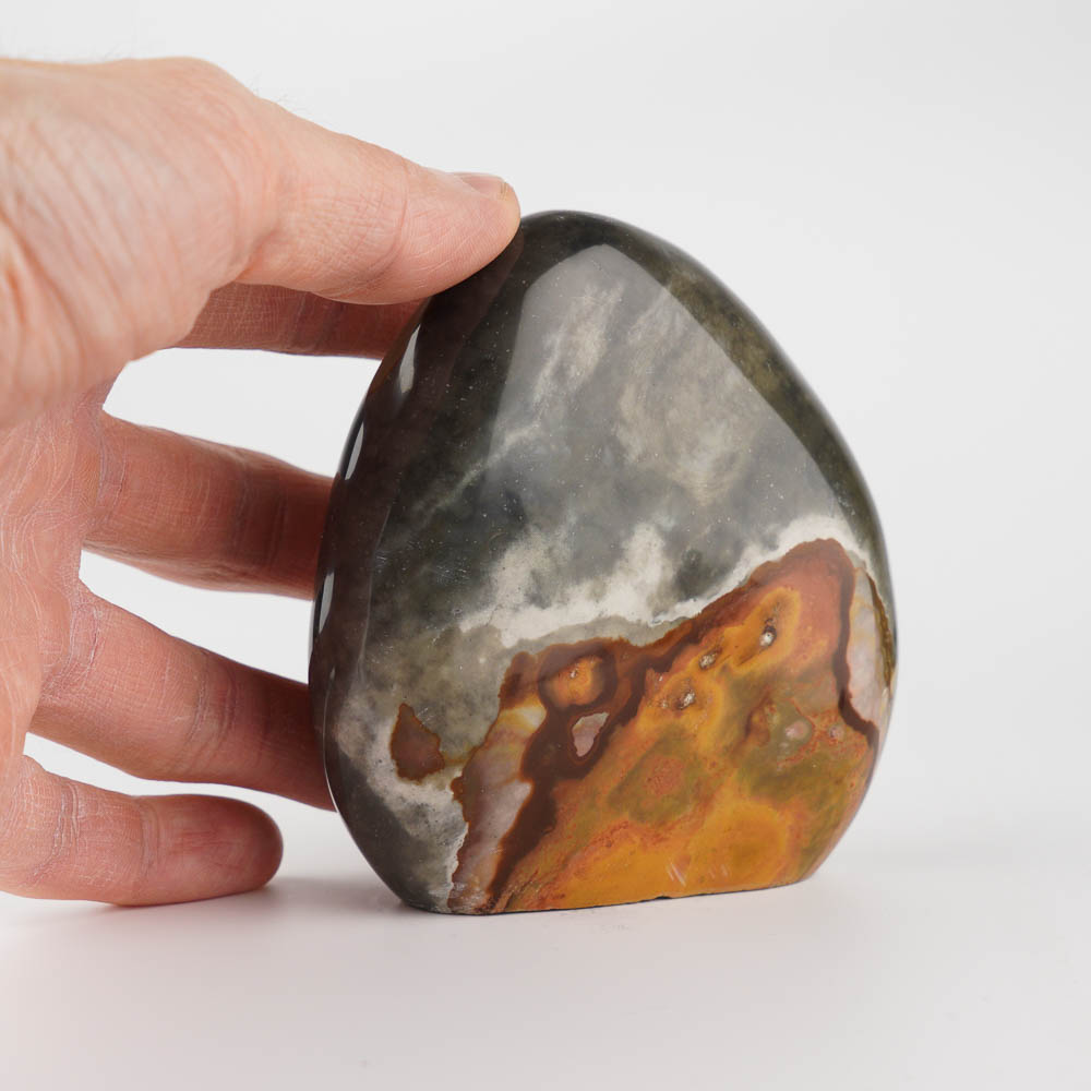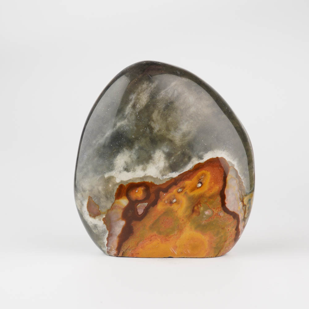 Ručne opracovaný, brúsený a leštený kameň jaspis imperial z Madagaskaru, vhodný ako dekorácia.