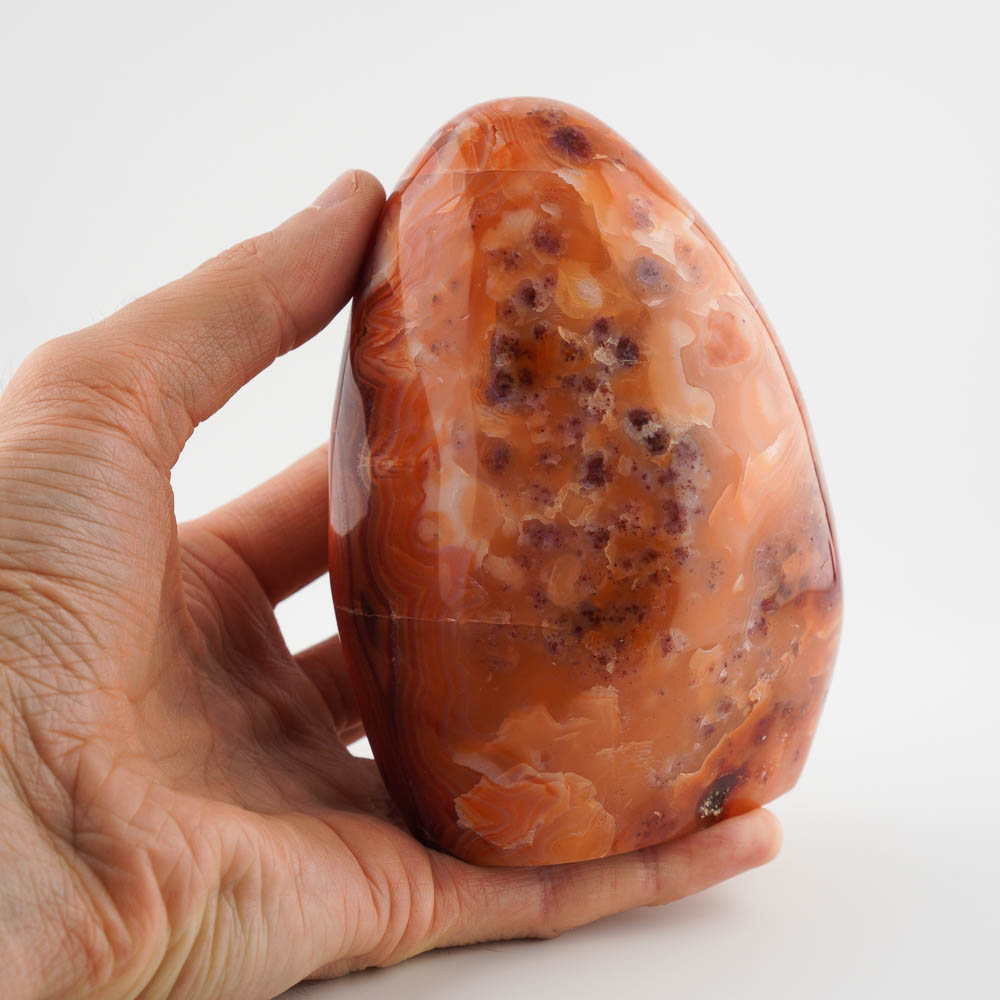 Ručne opracovaný, brúsený a leštený kameň karneol z Madagaskaru, vhodný ako dekorácia. Hmotnosť cca 1,11kg, veľkosť cca 12,5x9x6cm.