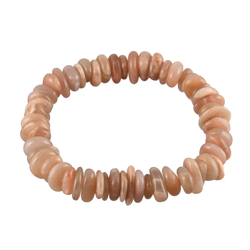 Náramok z kamienkov v tvare diskov navlečených na pevnej gumičke.