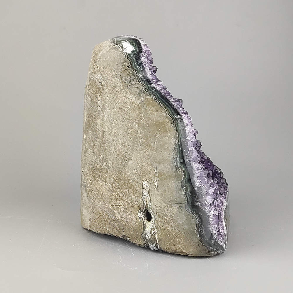 Ametyst je symbolom harmónie, pokoja a duchovnej ochrany. Pomáha upokojiť myseľ, odstraňuje stres a pozitívne ovplyvňuje energiu priestoru. Ideálny je na meditáciu, feng shui harmonizáciu alebo ako unikátna dekorácia.
