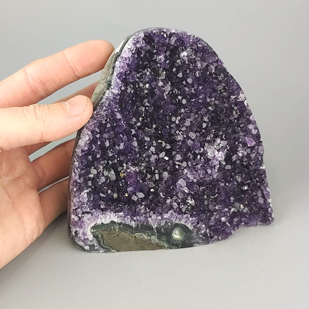 Táto nádherná ametystová drúza pochádza priamo z Uruguaja, známeho svojimi kvalitnými ametystovými ložiskami. Vyniká svojimi sýtymi fialovými kryštálmi, prirodzenou štruktúrou a jedinečným tvarom, vďaka čomu je nielen estetickým doplnkom, ale aj silným energetickým kameňom.