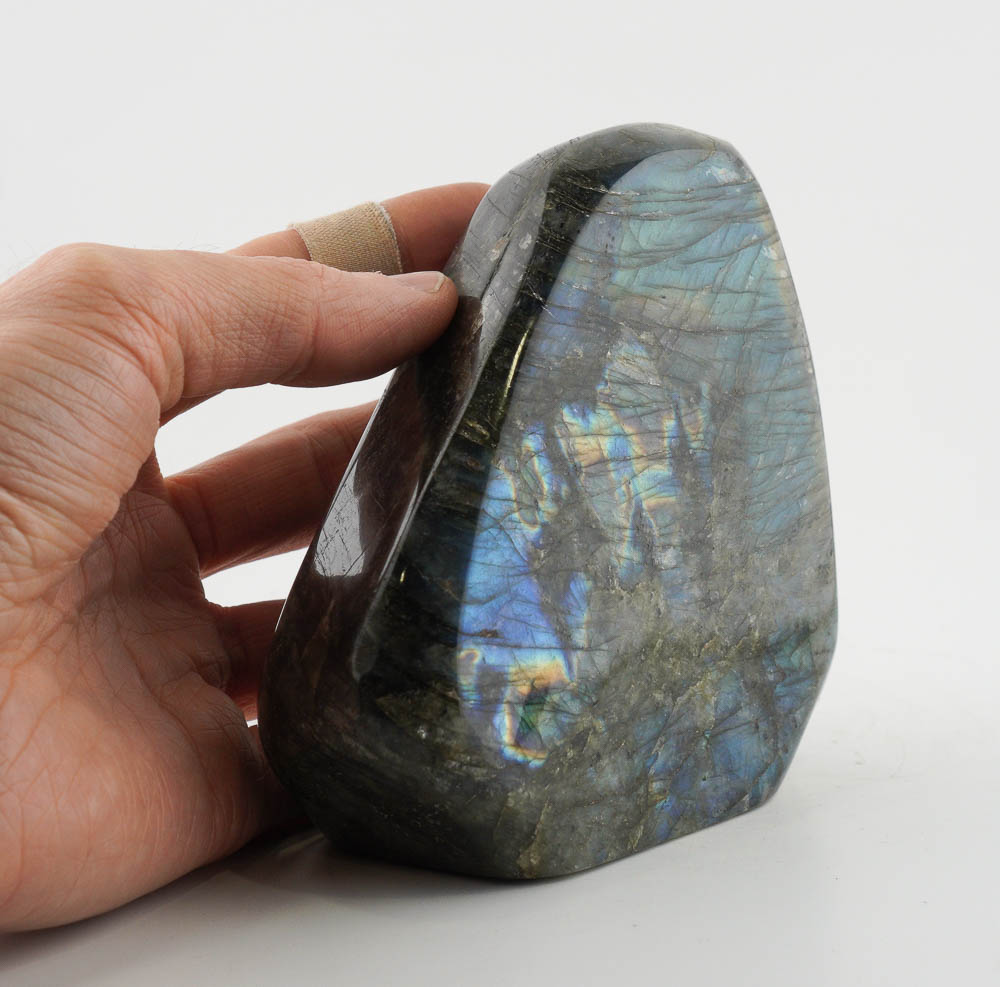 Ručne opracovaný, brúsený a leštený kameň labradorit z Madagaskaru, vhodný ako dekorácia. Hmotnosť cca 1,24kg, veľkosť cca 12x11,5x5cm. Krásne typické farebné odlesky sú vidieť pri určitom uhle dopadu svetla.