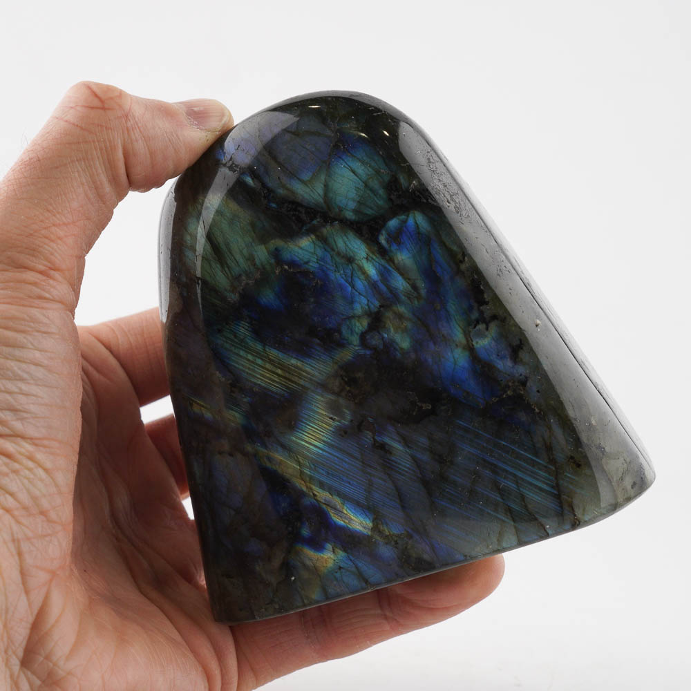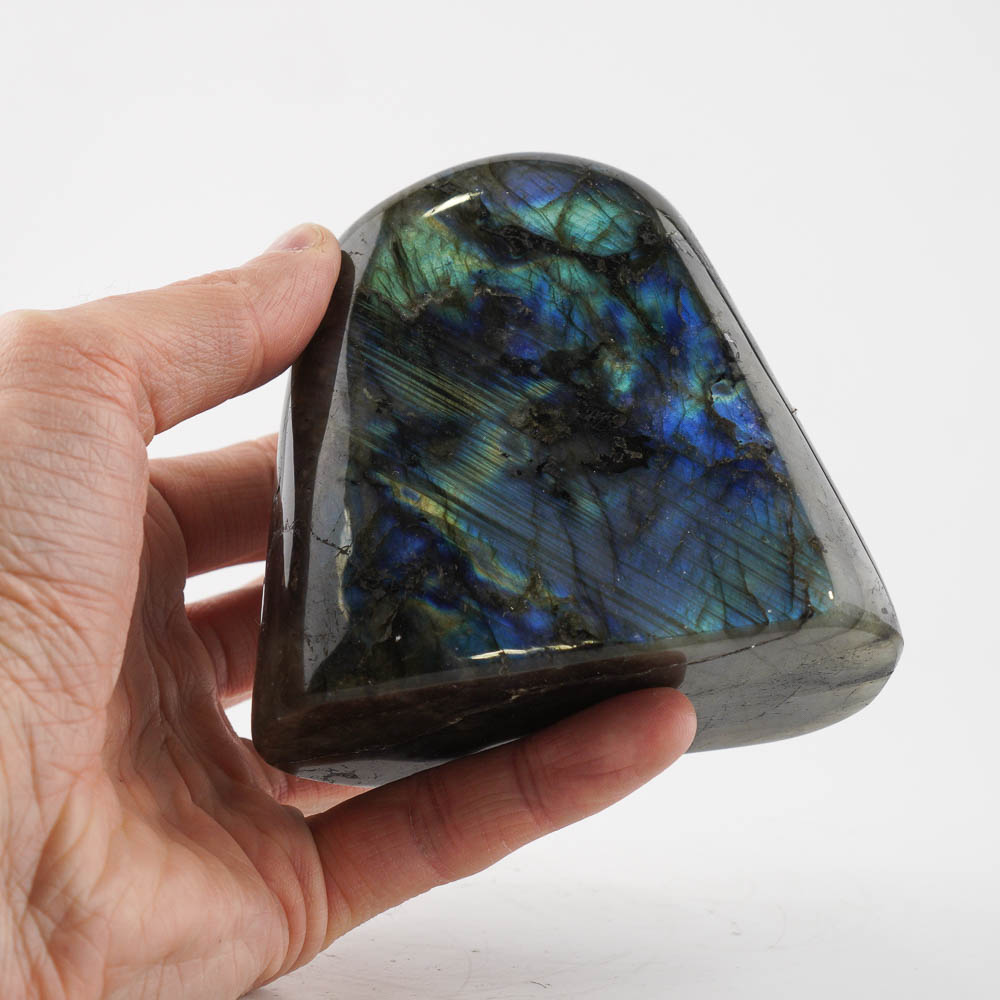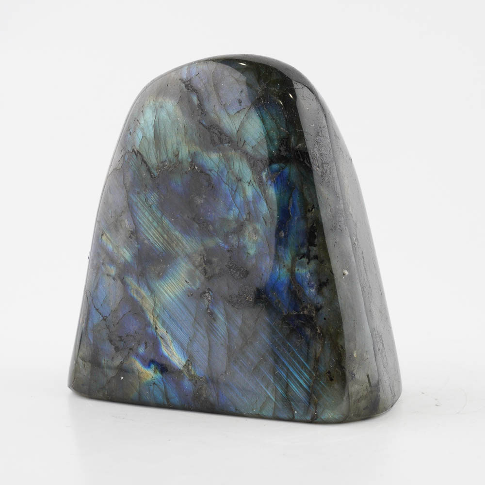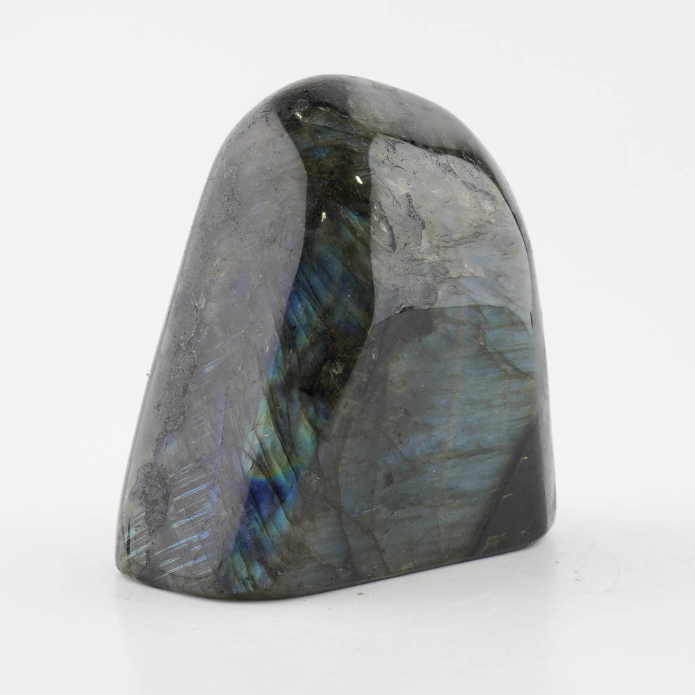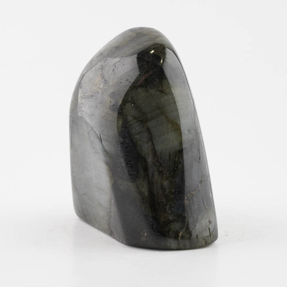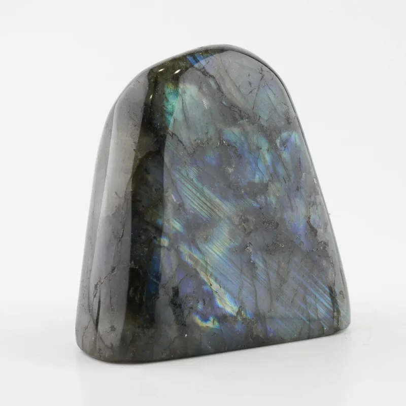 Ručne opracovaný, brúsený a leštený kameň labradorit z Madagaskaru, vhodný ako dekorácia. Hmotnosť cca 882g, veľkosť cca 10x10x5cm. Krásne typické farebné odlesky sú vidieť pri určitom uhle dopadu svetla.
