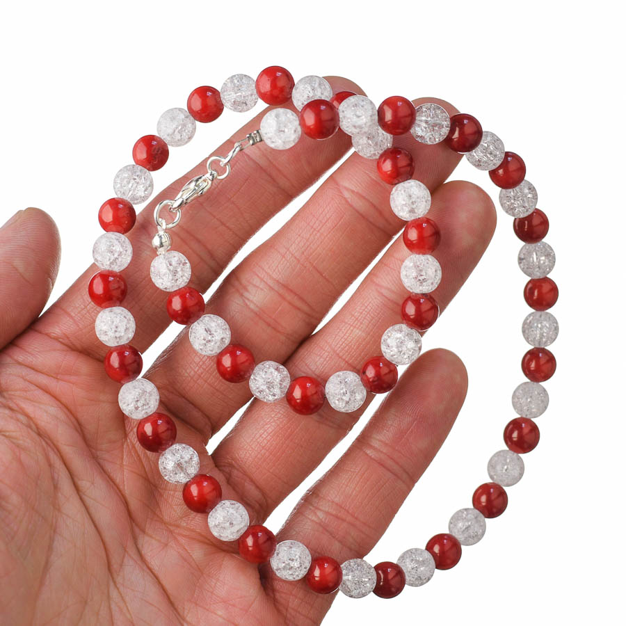 Guličkový náhrdelník - pukaný krištáľ, koral červený