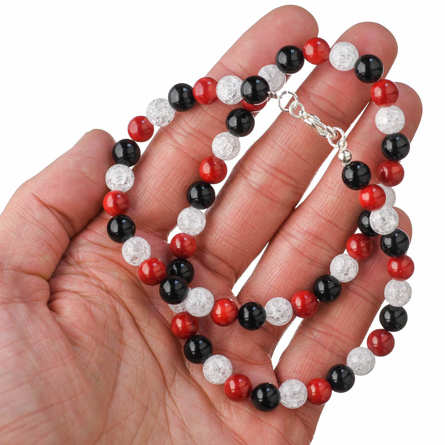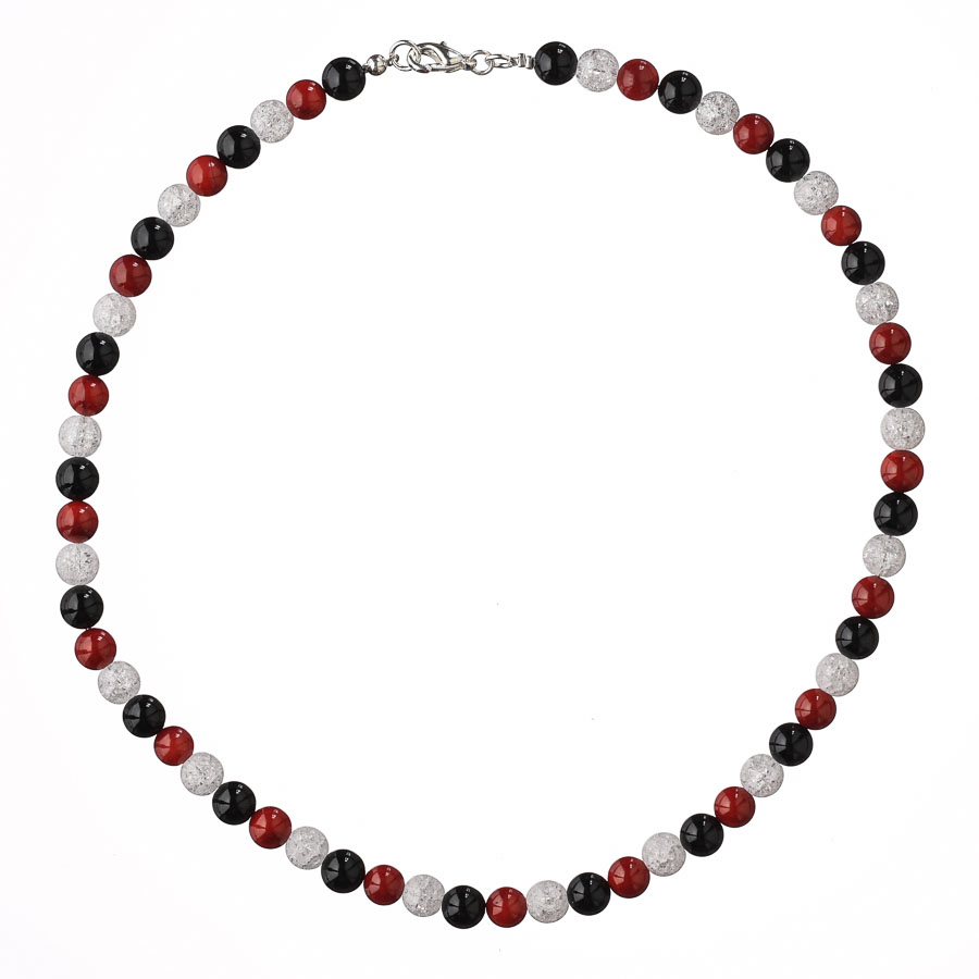 Guličkový náhrdelník - pukaný krištáľ, koral červený, ónyx