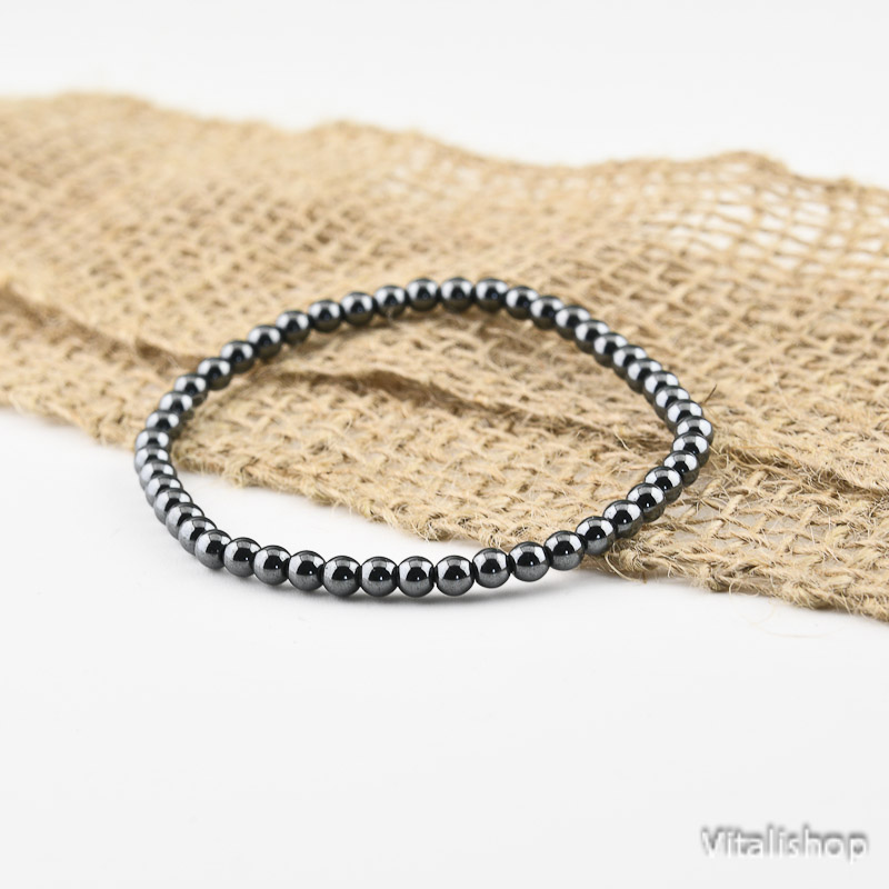 Náramok z drobných guličiek priemeru 4mm navlečených na gumičke. Dĺžka náramku je cca 17,5cm. Náramok sa ľahko prispôsobí aj väčšej ruke a je pohodlný na nosenie.