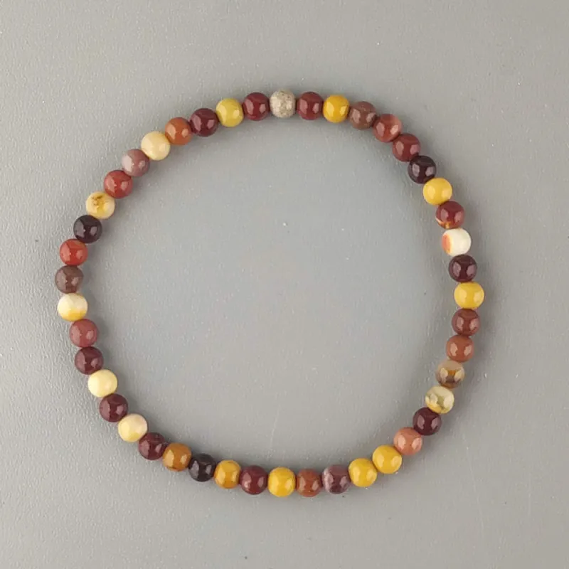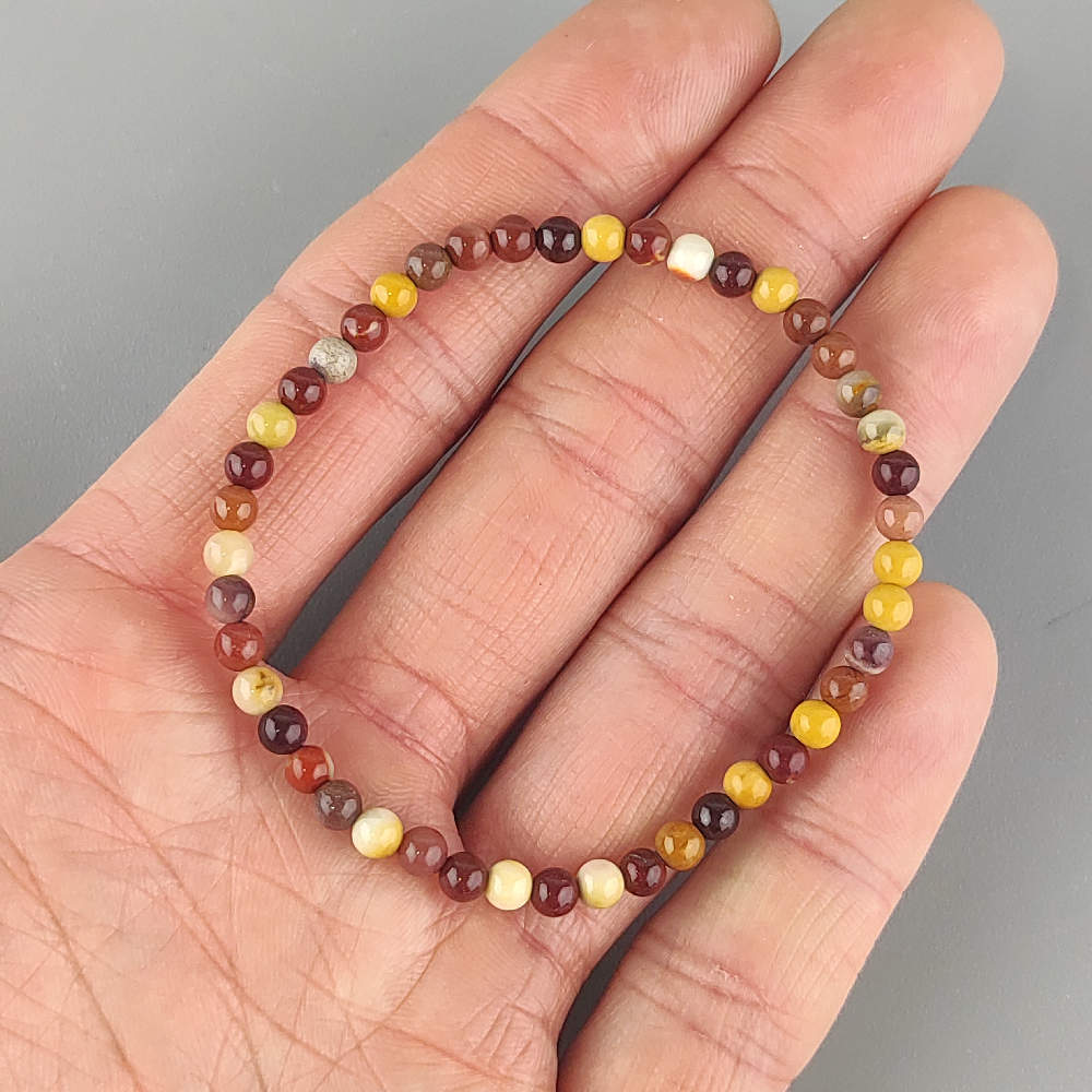 Náramok z drobných guličiek priemeru 4mm navlečených na gumičke. Dĺžka náramku je cca 17,5cm. Náramok sa ľahko prispôsobí aj väčšej ruke a je pohodlný na nosenie.