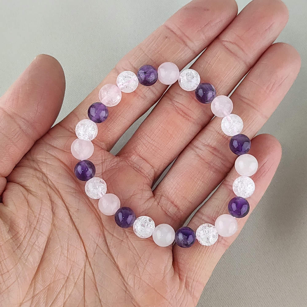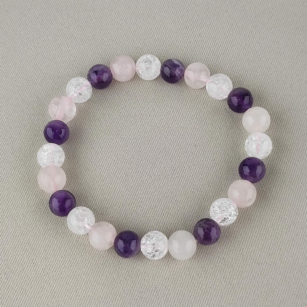 Guličkový náramok - Krištáľ, Ruženín, Ametyst