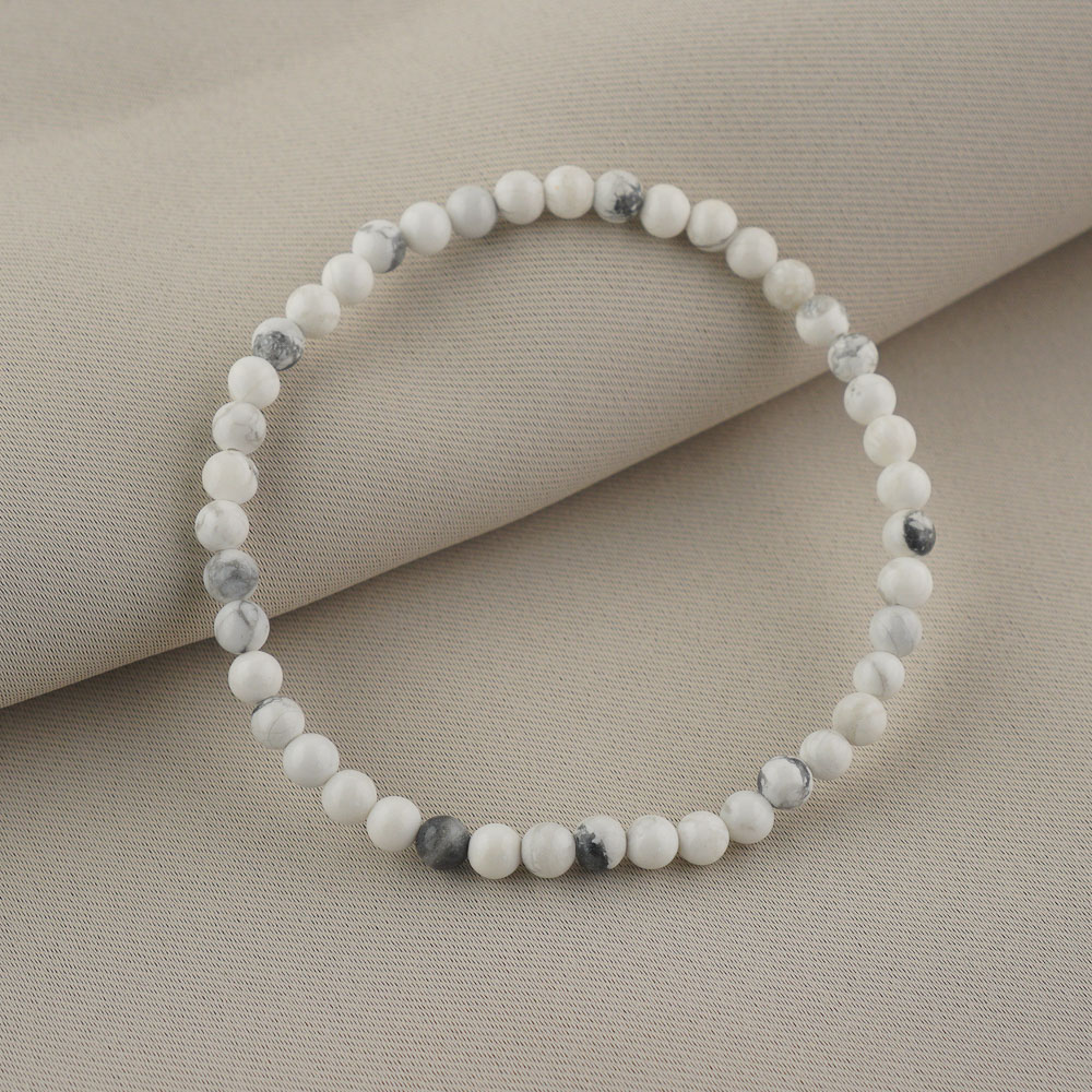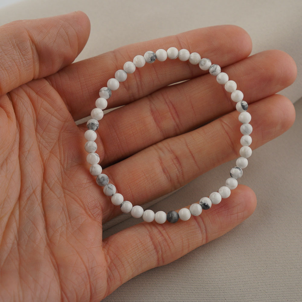Náramok z drobných guličiek priemeru 4mm navlečených na gumičke. Dĺžka náramku je cca 17,5cm. Náramok sa ľahko prispôsobí aj väčšej ruke a je pohodlný na nosenie.
