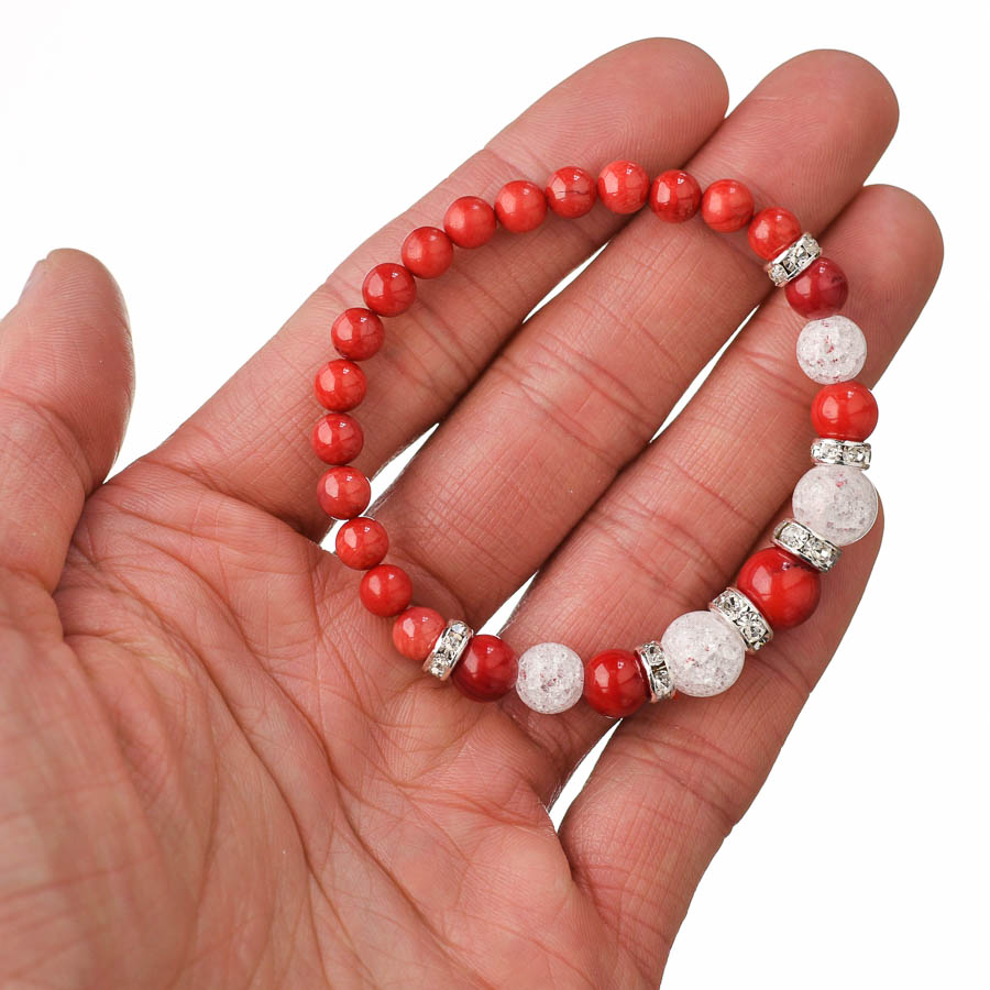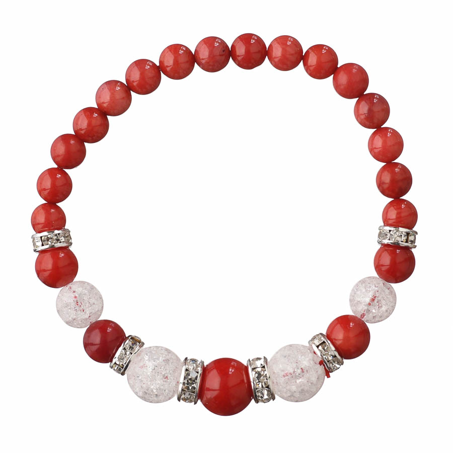 Guličkový náramok so zírkónmi - koral, pukaný krištáľ