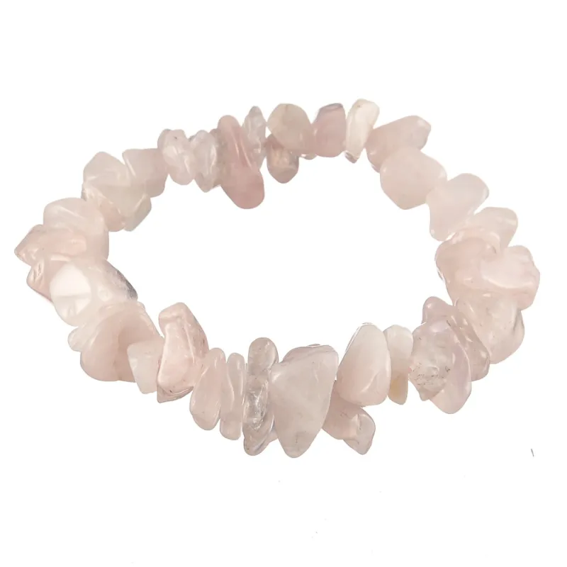 Náramok z veľkých nepravidelne sekaných kamienkov ruženínu navlečených na gumičke. Vnútorný obvod pri nenatiahnutej gumičke je cca 17,5-18cm