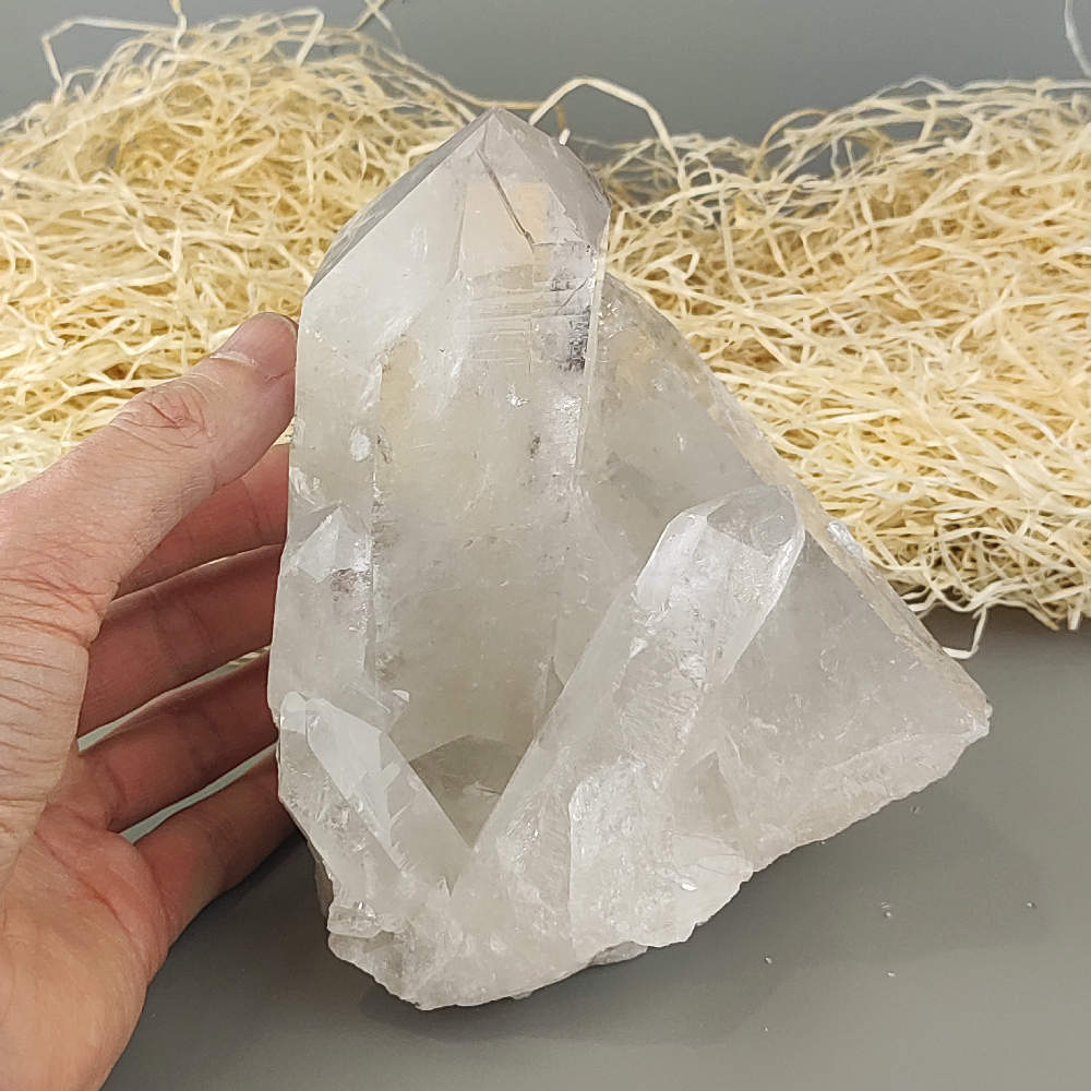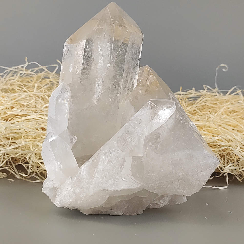 Horský krištáľ je čistá forma kremeňa (SiO₂) s priehľadným až mliečne bielym vzhľadom. Táto krištáľová drúza pochádza z Brazílie, jednej z najvýznamnejších lokalít výskytu kvalitných krištáľov. Horský krištáľ je známy svojou silnou energiou, ktorú v ezoterike považujú za univerzálny čistič a zosilňovač pozitívnych vibrácií. Pomáha harmonizovať telo i myseľ, podporuje jasné myslenie a duchovný rast. Prírodná drúza s krásne vyvinutými kryštálmi je nielen úžasným zberateľským kúskom, ale aj silným energetickým doplnkom do akéhokoľvek priestoru.