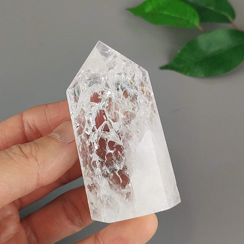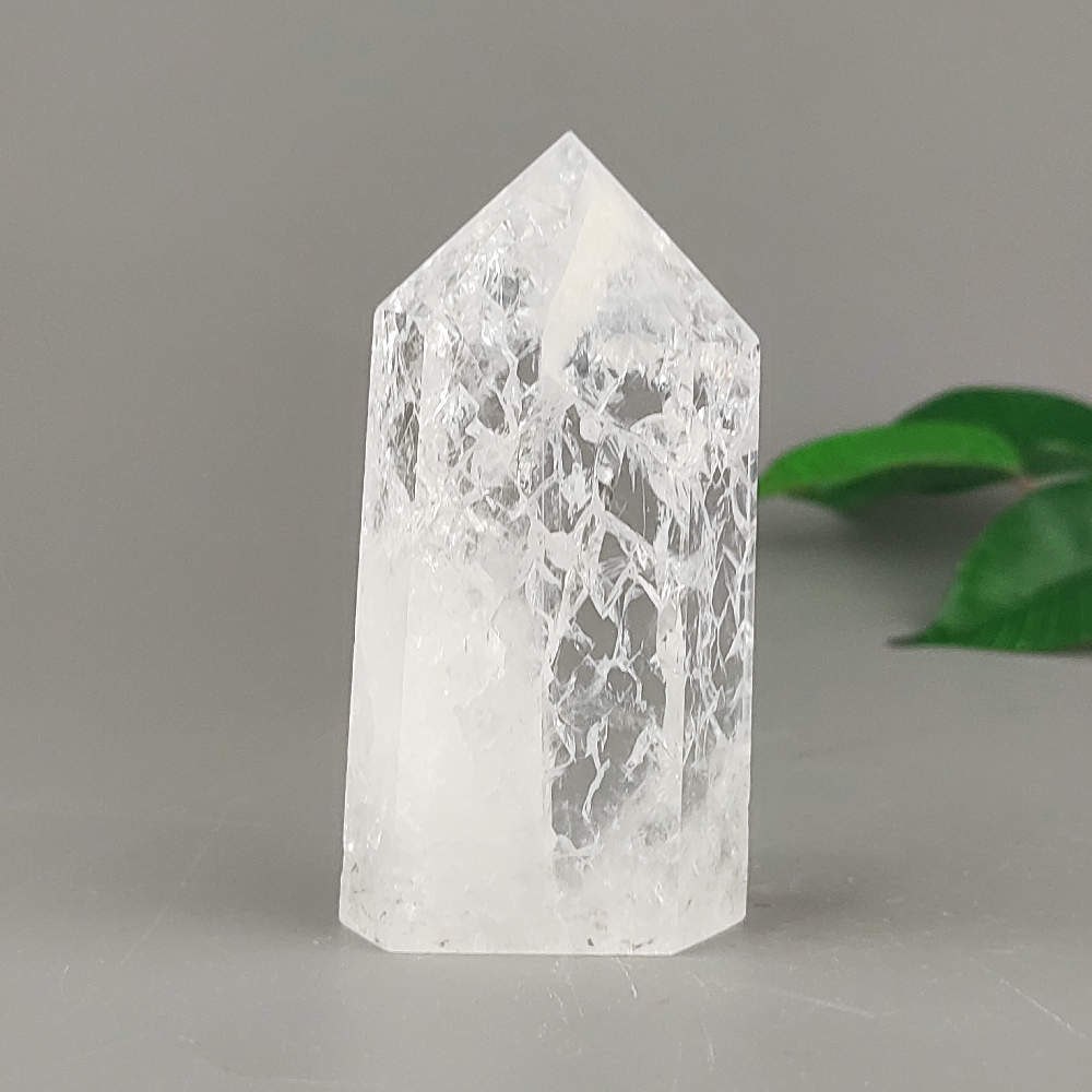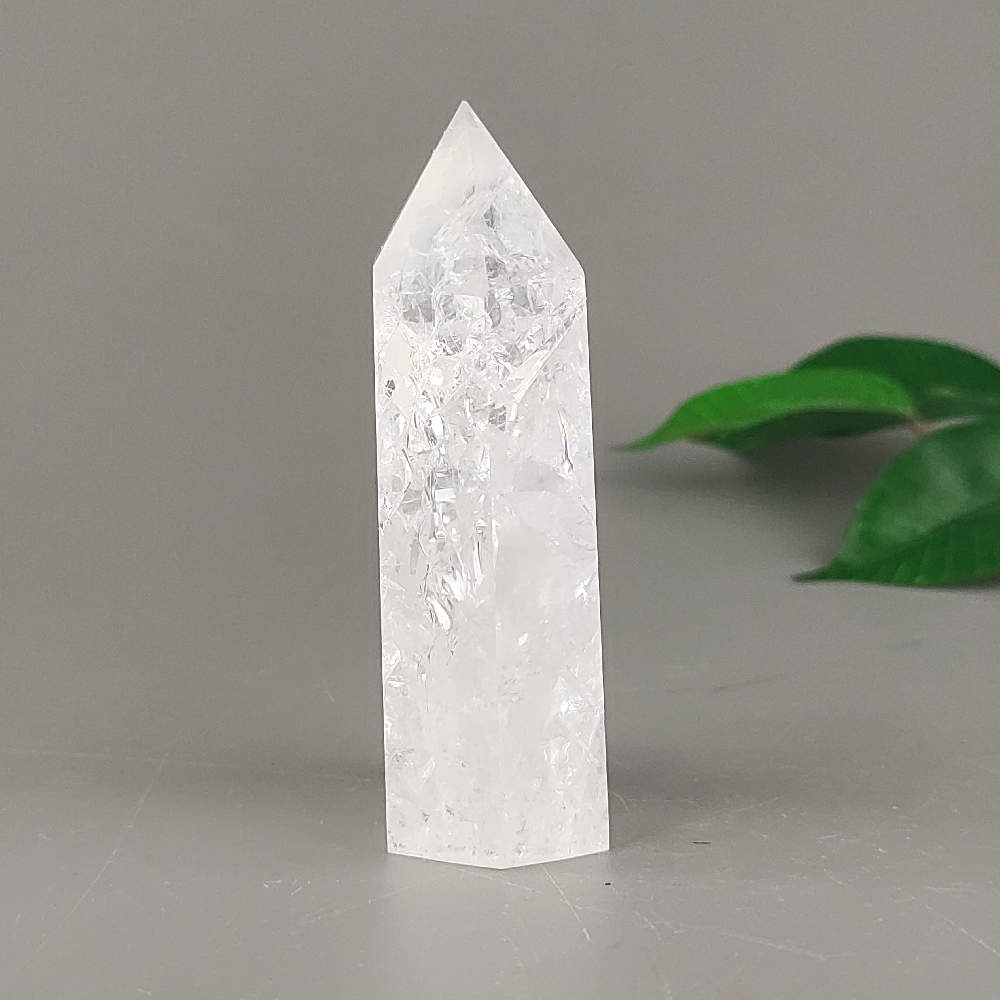 Originálny brúsený špic - obelisk (generátor) z prírodného pukaného krištáľu z Brazílie. Extra kvalita. Prasknutá špička