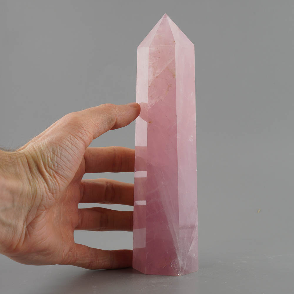 Nádherný brúsený špic - obelisk s prírodného ruženínu z Brazílie. Výška cca 20cm, hmotnosť cca 738g.