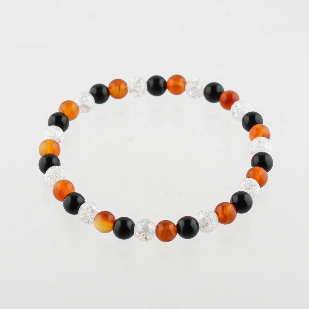Ónyx, karneol, krištáľ - guličkový náramok