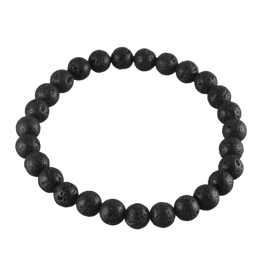 Náramok z guličiek lávového kameňa navlečených na pevnej gumičke.