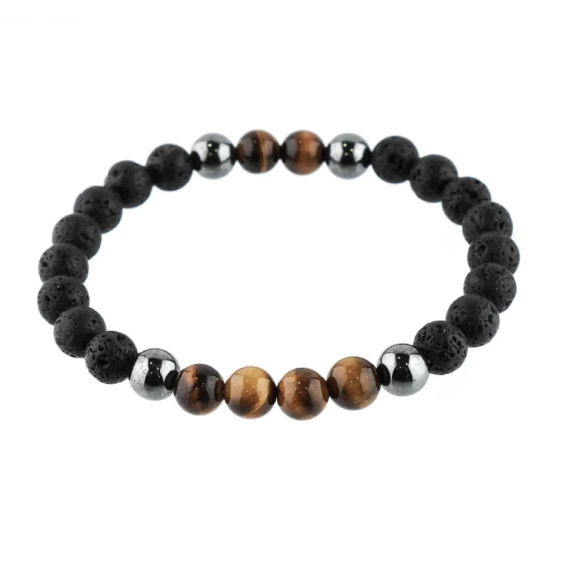 Pánsky náramok - lávový kameň, hematit, tigrie oko