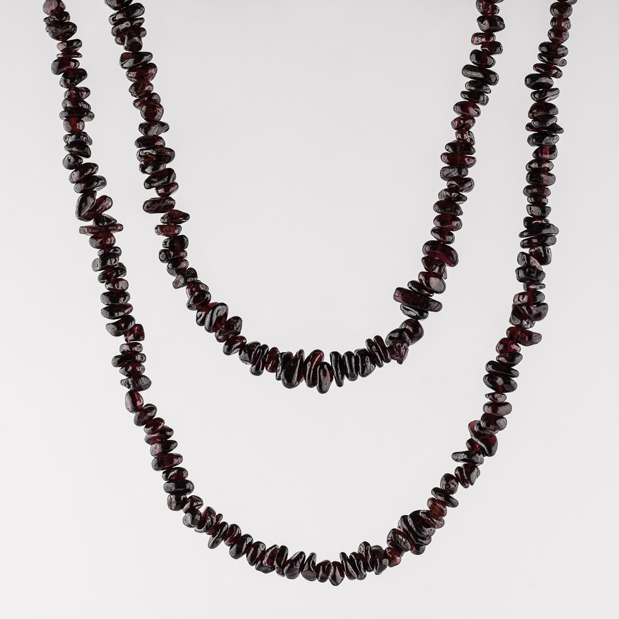 Náhrdelník z drobných sekaných kamienkov navlečených na pevnom nylonovom lanku. Náhrdelník je v jednom celku dĺžky cca 75-80cm (nemá zapínanie), je preto vhodný pre všetkých.