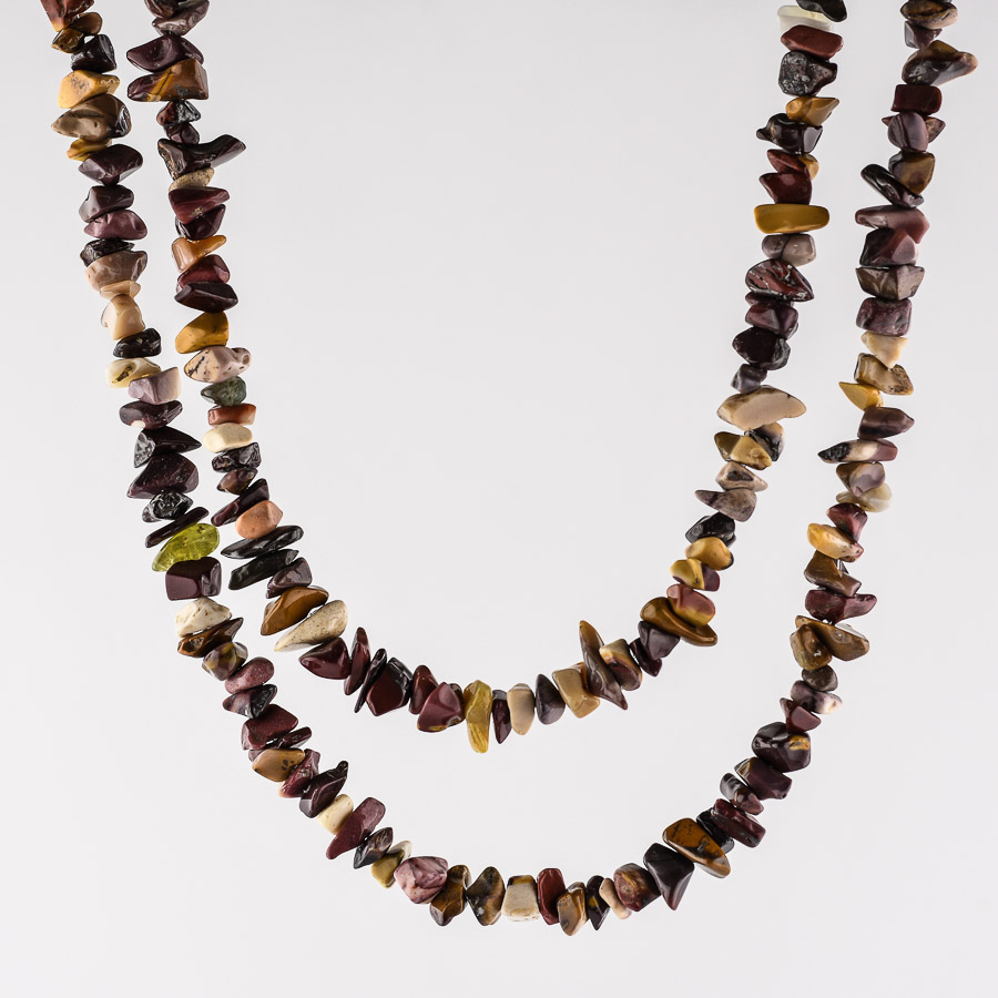Náhrdelník z drobných sekaných kamienkov navlečených na pevnom nylonovom lanku. Náhrdelník je v jednom celku dĺžky cca 75-80cm (nemá zapínanie), je preto vhodný pre všetkých.