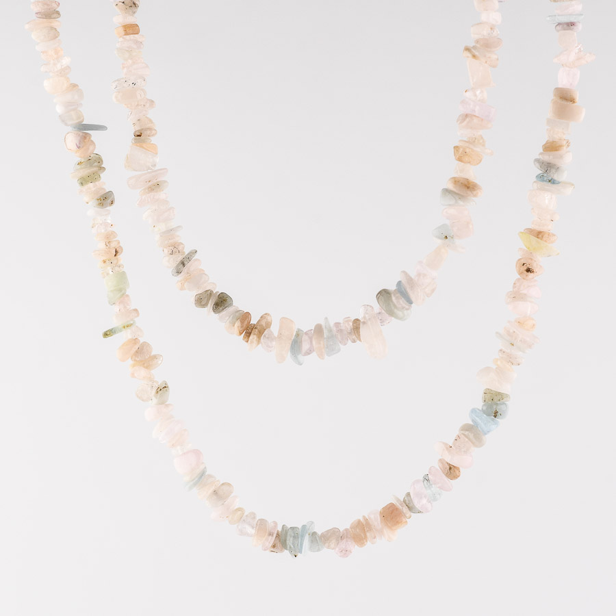 Náhrdelník z drobných sekaných kamienkov navlečených na pevnom nylonovom lanku. Náhrdelník je v jednom celku dĺžky cca 75-80cm (nemá zapínanie), je preto vhodný pre všetkých.