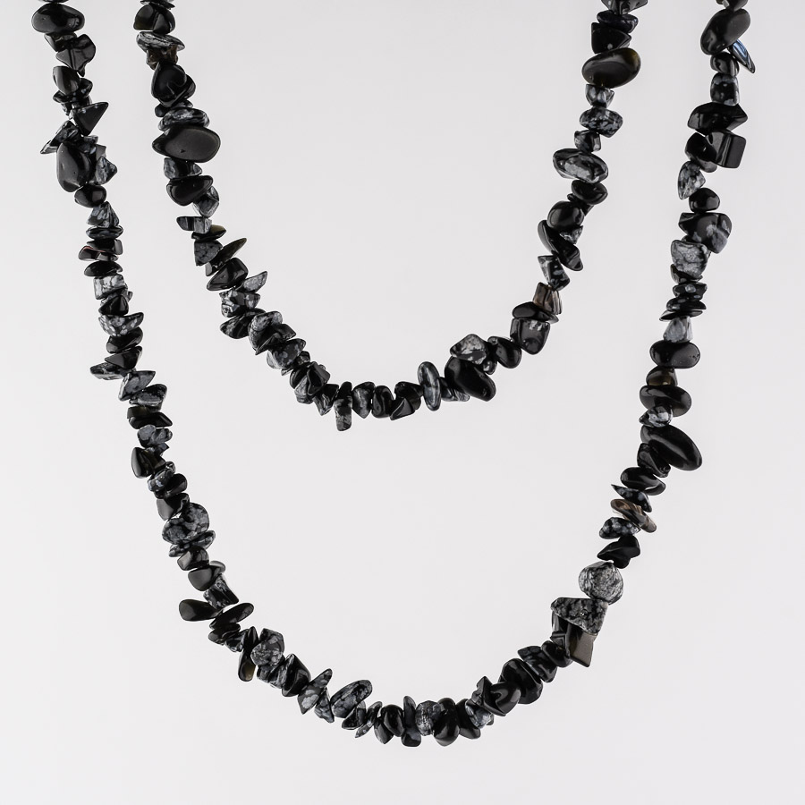 Náhrdelník z drobných sekaných kamienkov navlečených na pevnom nylonovom lanku. Náhrdelník je v jednom celku dĺžky cca 75-80cm (nemá zapínanie), je preto vhodný pre všetkých.