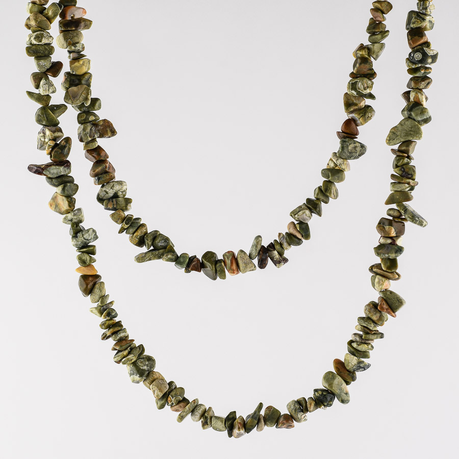 Náhrdelník z drobných sekaných kamienkov navlečených na pevnom nylonovom lanku. Náhrdelník je v jednom celku dĺžky cca 75-80cm (nemá zapínanie), je preto vhodný pre všetkých.