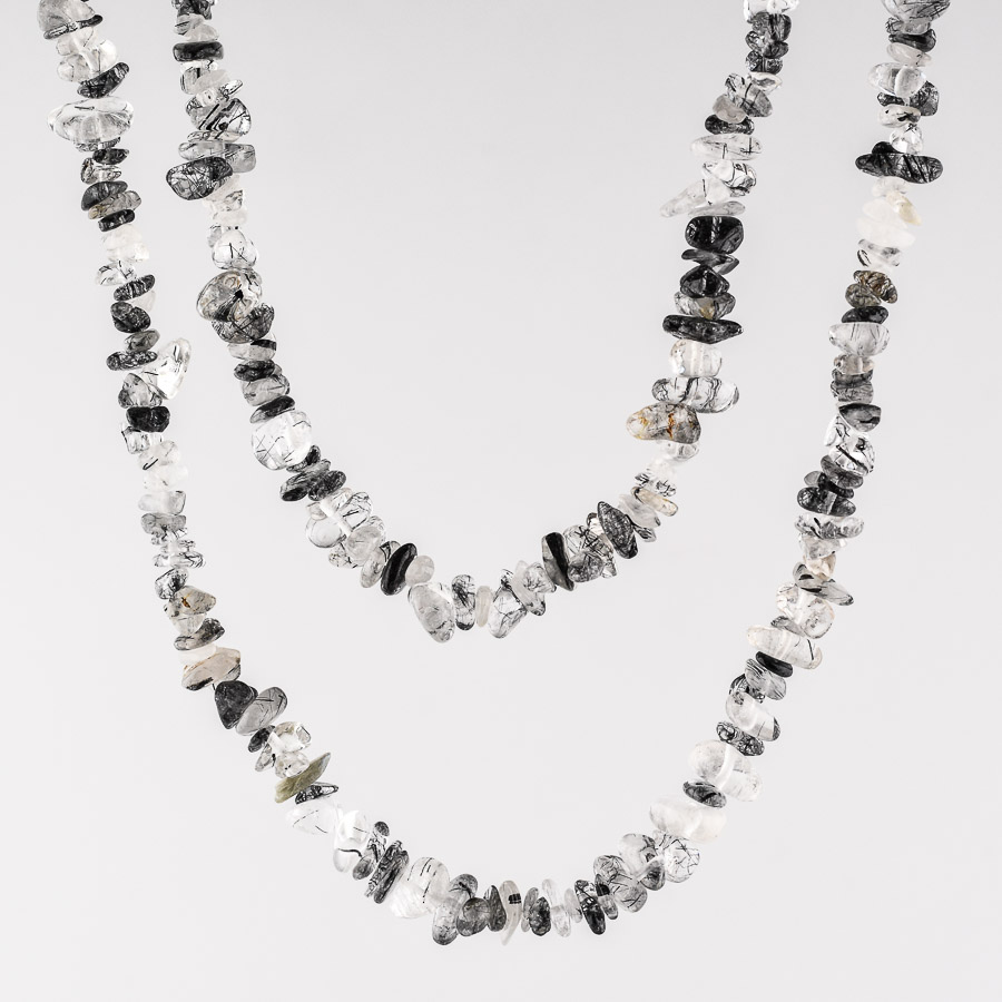 Náhrdelník z drobných sekaných kamienkov navlečených na pevnom nylonovom lanku. Náhrdelník je v jednom celku dĺžky cca 75-80cm (nemá zapínanie), je preto vhodný pre všetkých.