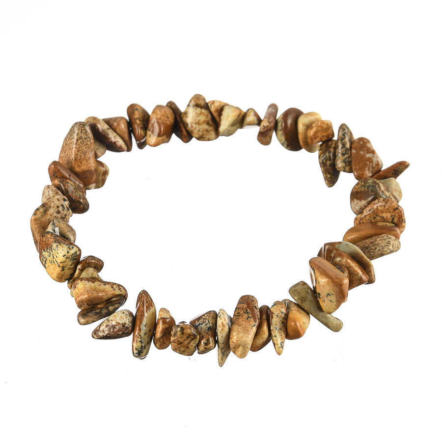 Náramok z drobných sekaných kamienkov navlečených na gumičke. Dĺžka náramku je cca 17,5cm ale vďaka gumičke sa prispôsobí aj väčšej ruke.