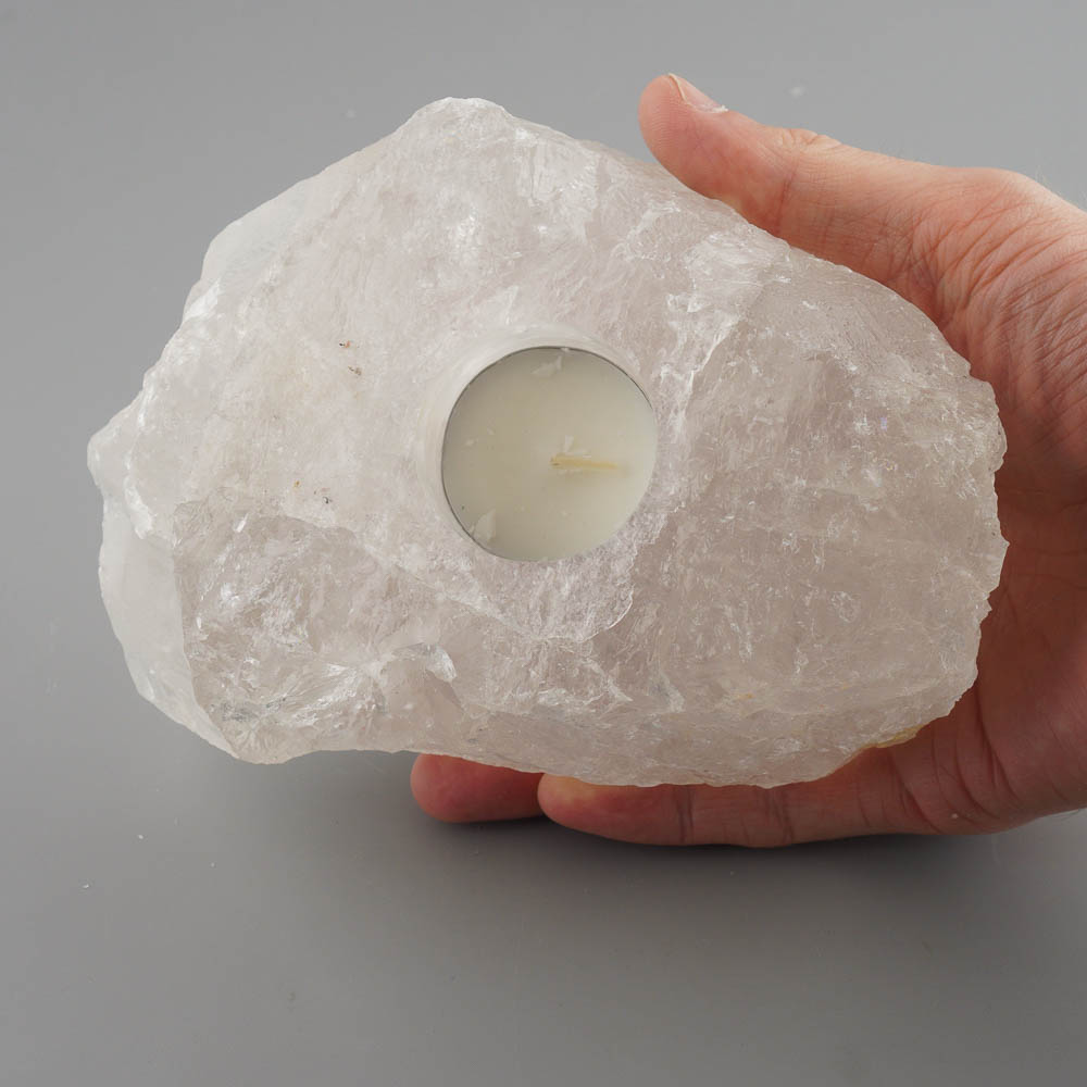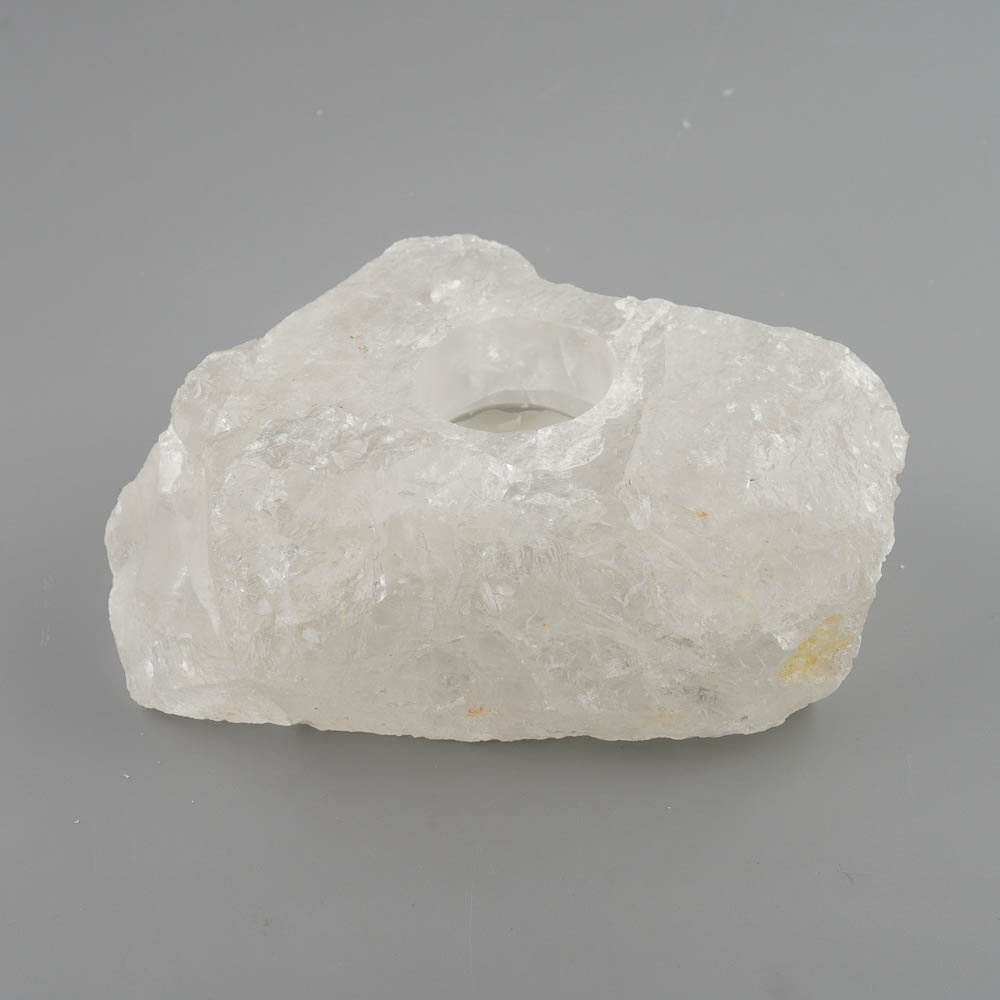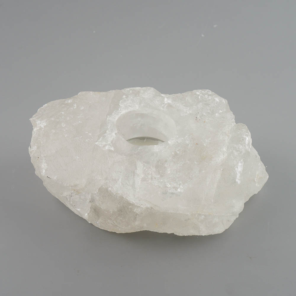 Svietnik na čajovú sviečky zo surového ručne opracovaného krištáľu z Brazílie.